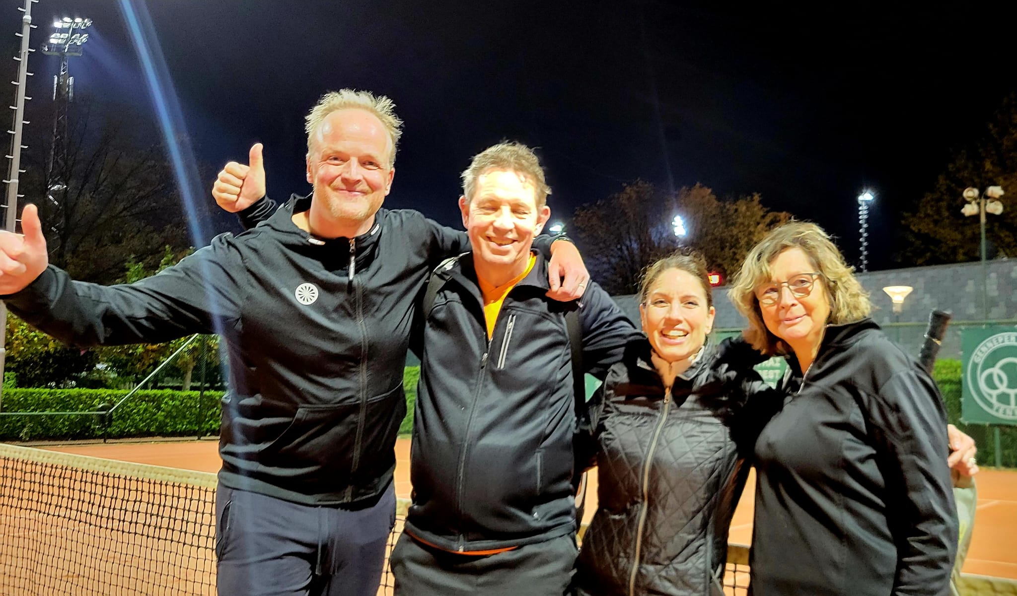 Het mixteam van Maarten Vrehen heeft het toch geflikt : Kampioen ! Niet gehinderd door allerlei blessures, gewoon alles winnen, nou ja met een gelijkspel dan. Knap hoor. Oud captain Patty de Laat is nog geheel geblesseerd. Waren Claudy Poppelaars en Wouter Schooneveld na lange blessures terug, raakten ze opnieuw geblesseerd... Dus met de nodige invallers en doorzetters ertegenaan ! En met een mooi resultaat dus. Op de foto vlnr Wouter van Hunnik, Maarten Vrehen, Jacqueline Cornelissen, en invalster Jose Vrehen. En Michèle Croijmans en Marieke van Grootel hebben ook hun steen bijgedragen ! Proficiat allemaal !